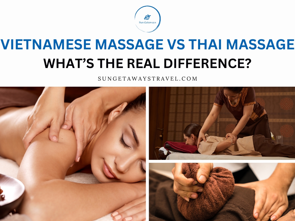 👉 Continue your wellness adventure with Sun Getaways Travel, where our tours are designed to let you experience the essence of both massages — from Vietnam’s gentle herbal rituals to Thailand’s energizing temple traditions.